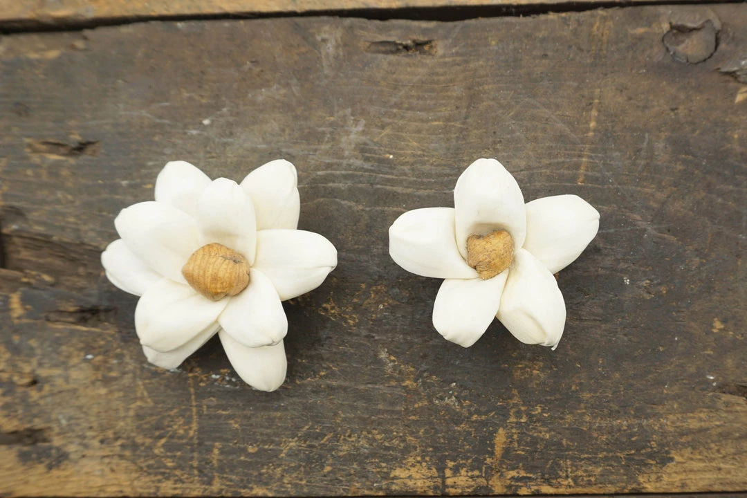 Sola flowers are not fresh flowers. They are handmade wood flowers. The texture is similar to a really thin version of balsa wood. Because they are handmade, and made from natural materials, no two are exactly alike. Brown veining, sometimes small holes from a “knot” in the wood are on some of the flowers due to being made from the bark of a tree.