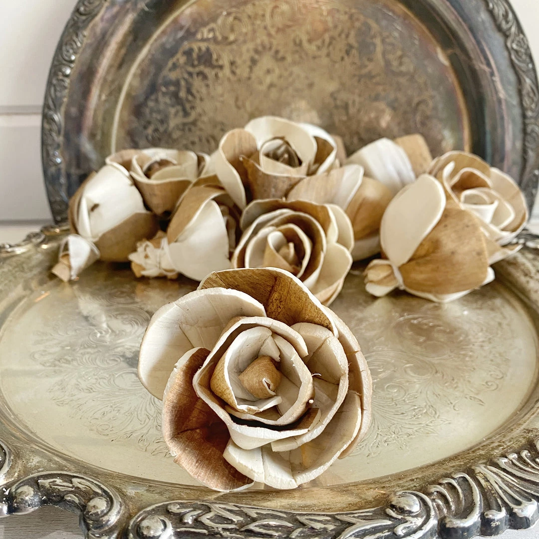 Sola flowers are not fresh flowers. They are handmade wood flowers. The texture is similar to a really thin version of balsa wood. Because they are handmade, and made from natural materials, no two are exactly alike. Brown veining, sometimes small holes from a “knot” in the wood are on some of the flowers due to being made from the bark of a tree.