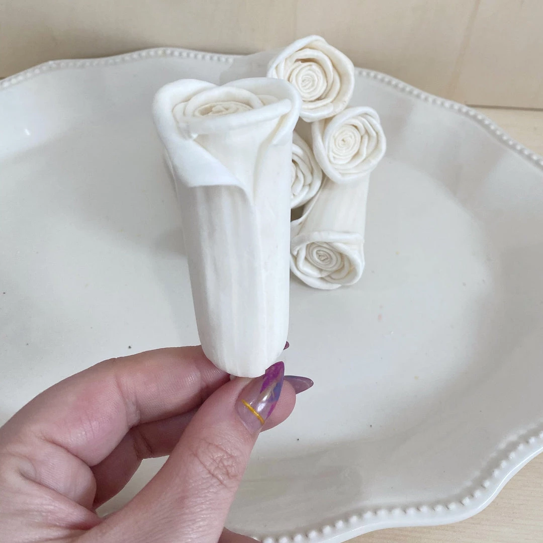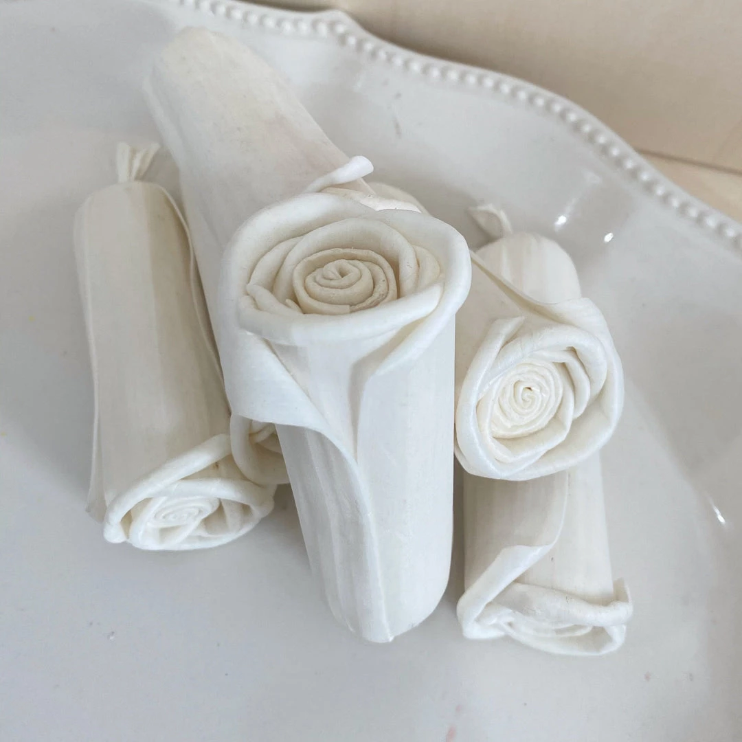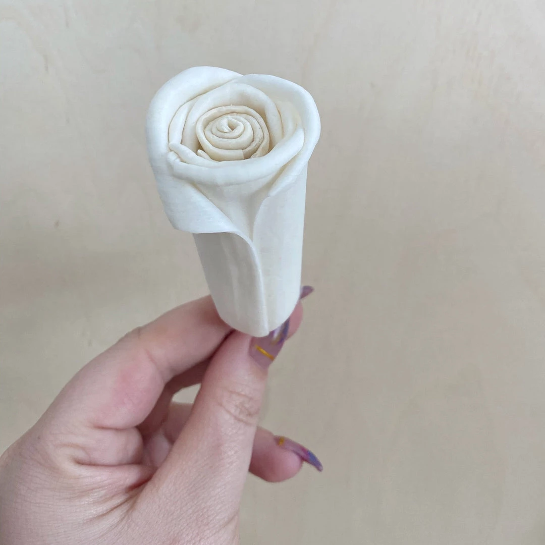 Sola flowers are not fresh flowers. They are handmade wood flowers. The texture is similar to a really thin version of balsa wood. Because they are handmade, and made from natural materials, no two are exactly alike. Brown veining, sometimes small holes from a “knot” in the wood are on some of the flowers due to being made from the bark of a tree.