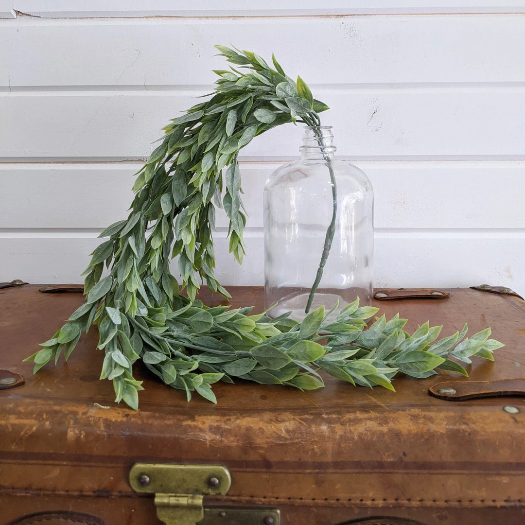 Light weight faux leaves with a yellow undertone green. This faux greenery is a wonderful staple for any arrangement. A hanging greenery style