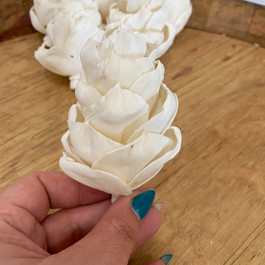 These sola flowers are handmade and there can be a slight difference in size and shape from flower to flower.