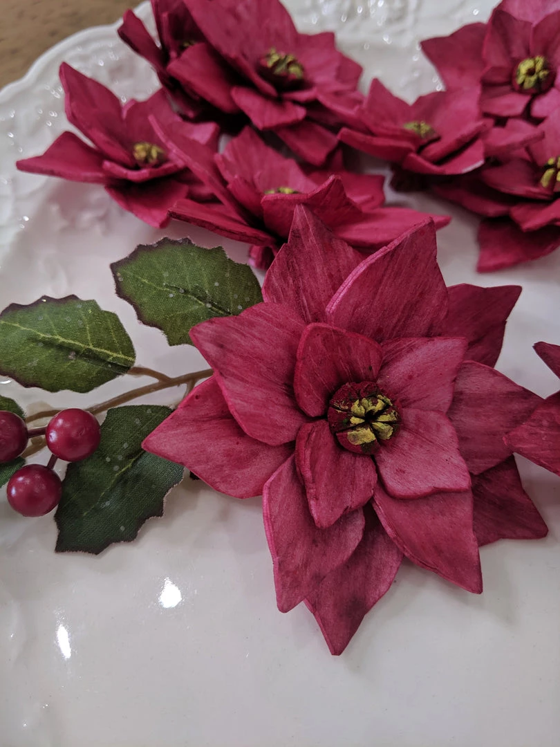 Need a flower to up your holiday arrangements this year? Â Look no further than our poinsettia sola wood flower!Â