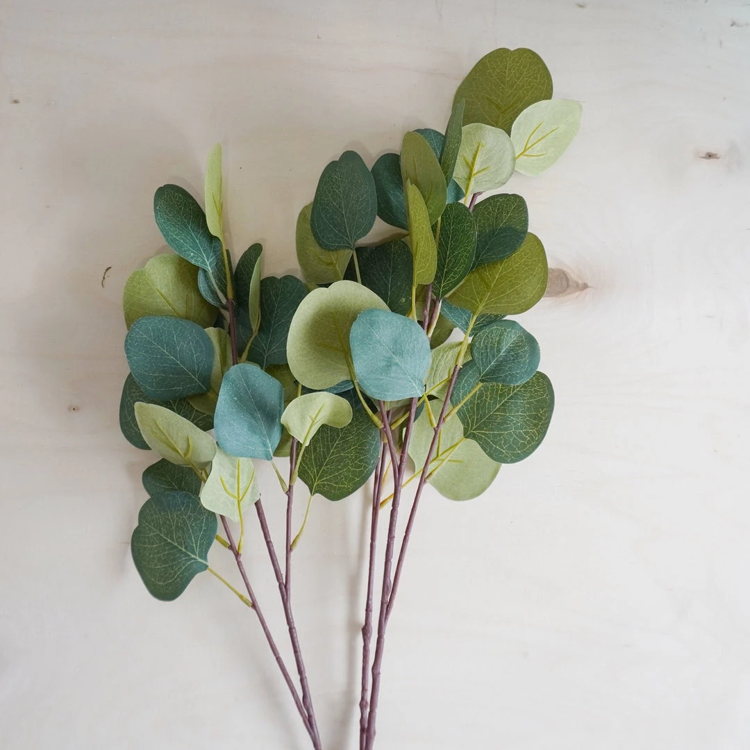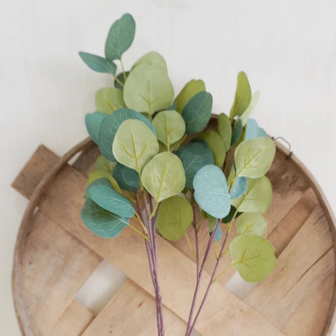 A staple of all staple greenery for makers. Artificial silver dollar eucalyptus featuring multiple green coloring