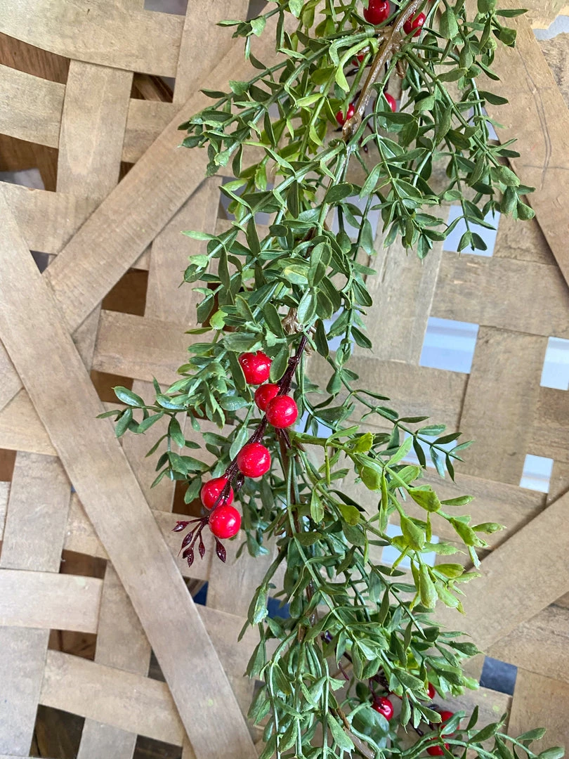 Small boxwood leaf garland and features red berries